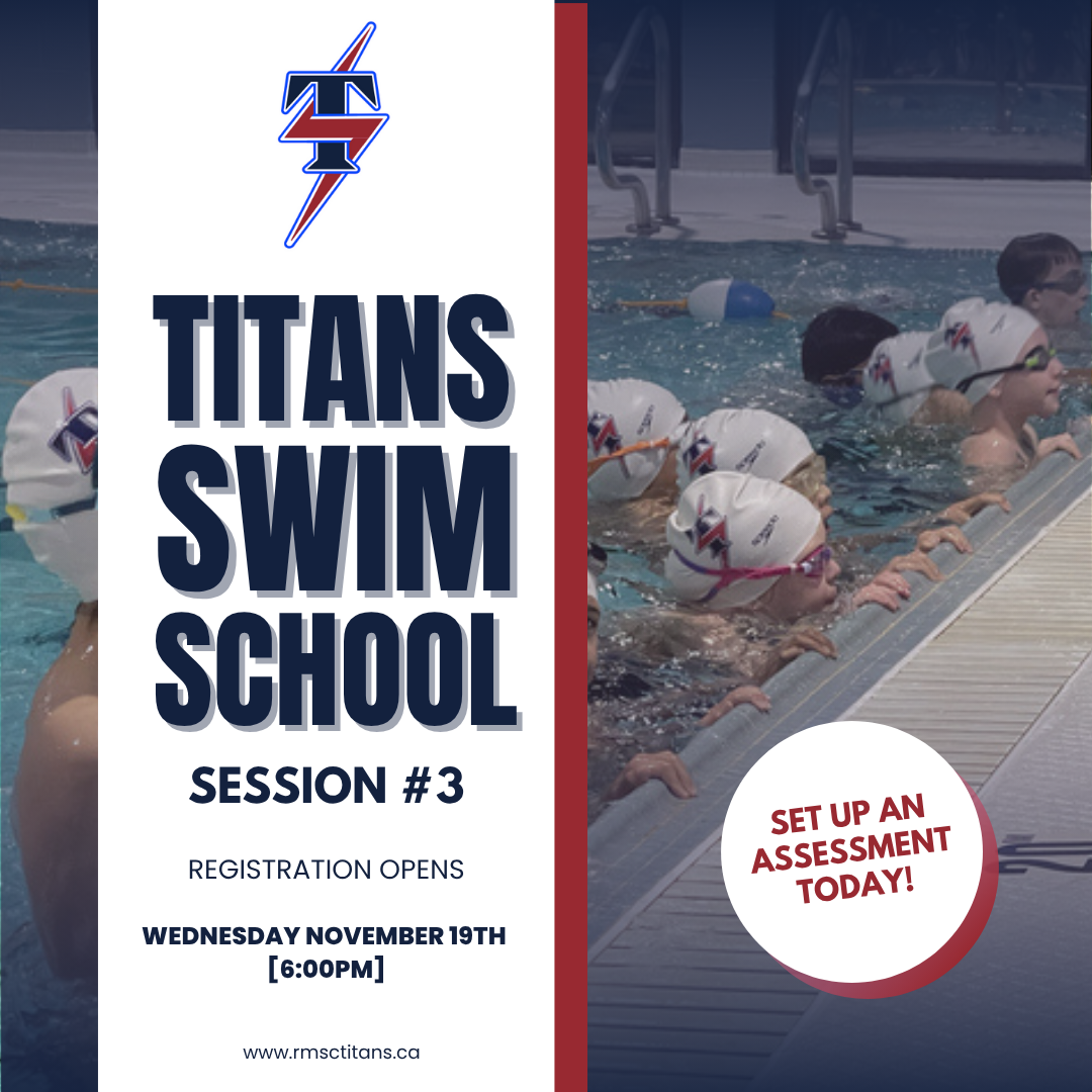 The first step in joining the Titans Swim School or the RMSC competitive program, is to schedule an assessment with one of our RMSC coaches. To schedule an assessment, please head to the link below! If you are unable to make any of the available times, please email joinus@rmsctitans.ca, and we will schedule a time that works with your schedule.