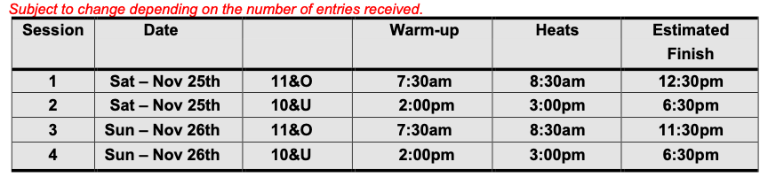 [These ages group may change, please note that final information regarding age division will be emailed out closer to the meet date]